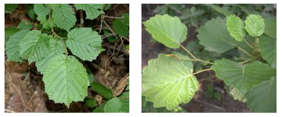 어긋나기로 타원상 달걀꽃이며 길이는 8 x 6cm 정도로서 가장자리가 5~8개로 얕게 갈라지며 겹톱니가 있고 표면은 짙은 녹색이며 맥위에 잔털이 있다.