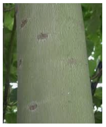 가지, 줄기는 수비가 잘 벗겨지고 회갈색이며, 소지는 자갈색이다.
