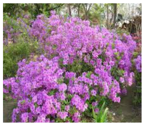 모감주나무(황색꽃), 조팝나무(하얀색꽃), 박태기나무(홍자색), 산철쭉(홍자색)